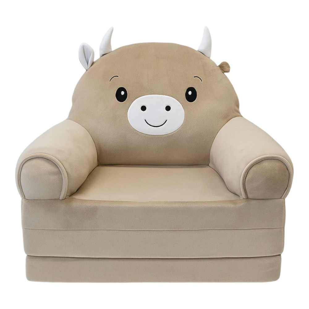Scaunul moale pentru copii "Bull" este o combinatie de confort, grija si design distractiv, creat special pentru copii. Este realizat din plus moale, placut la atingere, si are un design transformabil care iti permite sa transformi rapid scaunul intr-un pat confortabil. O astfel de jucărie va deveni nu numai un element elegant al unei camere pentru copii, ci și un loc preferat pentru a vă odihni, a juca sau a viziona desene animate.