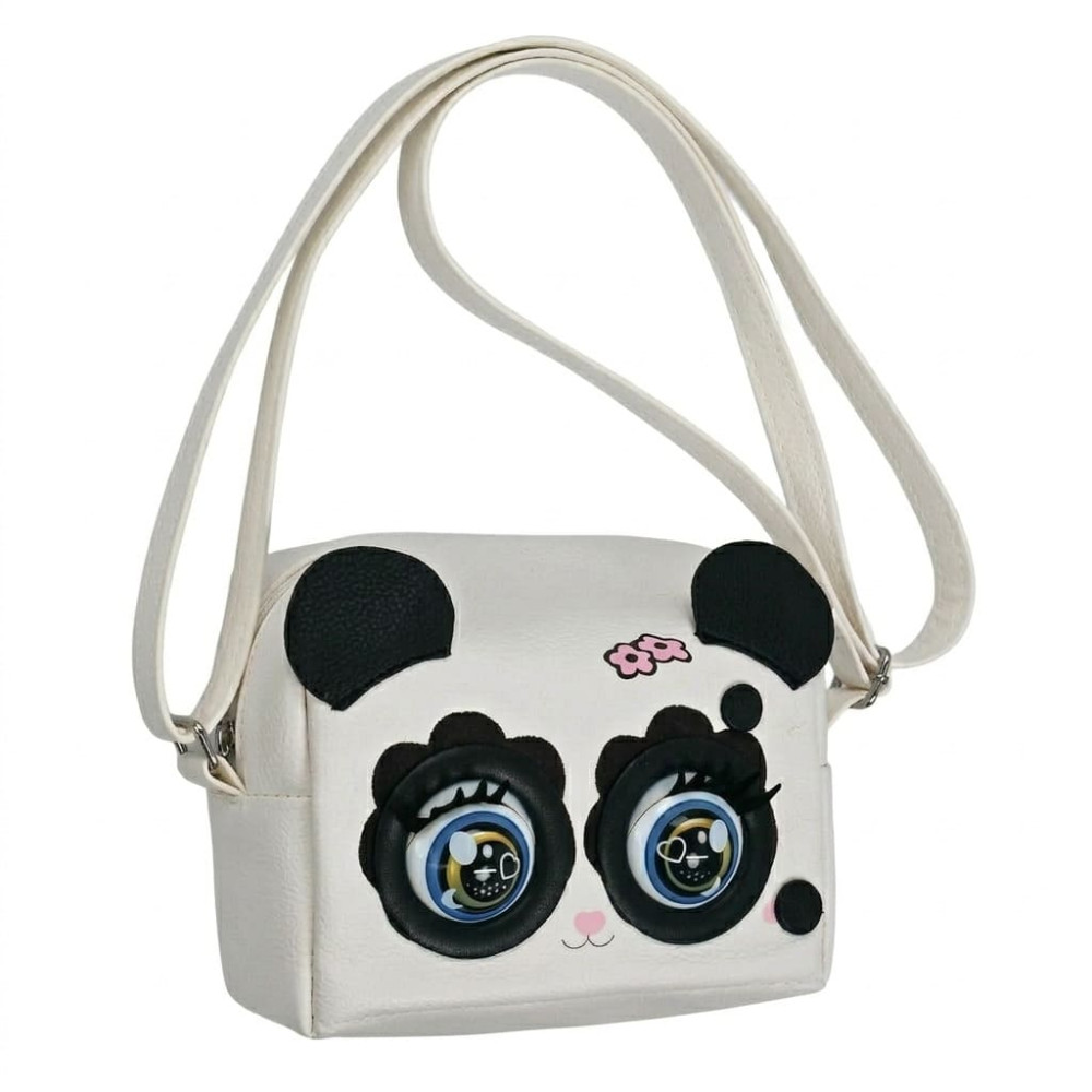 Acest panda este doar o descoperire. Ea reacționează la atingere și clipește foarte amuzant. Geanta de mână este convenabilă, se potrivește tuturor lucrurilor mici ale copiilor. Calitatea materialelor este foarte mare.