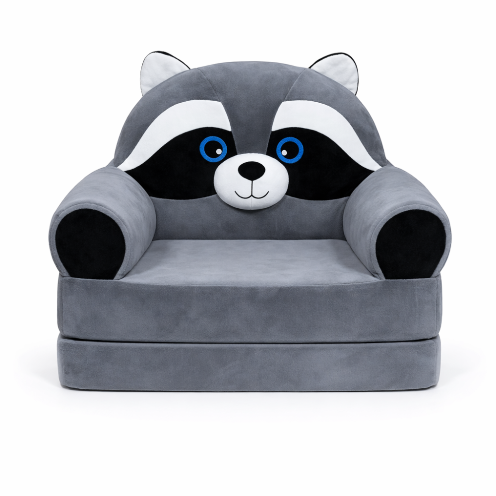 Нет отзывов о товаре Детское мягкое раскладное кресло-трансформер в виде енотика с комфортным спальным местом на две секции
