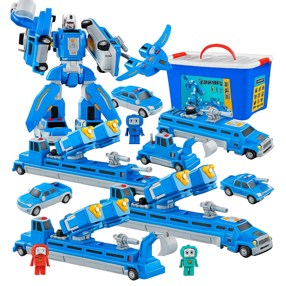 О товаре Синий магнитный робот 6в1, в контейнере для хранения
